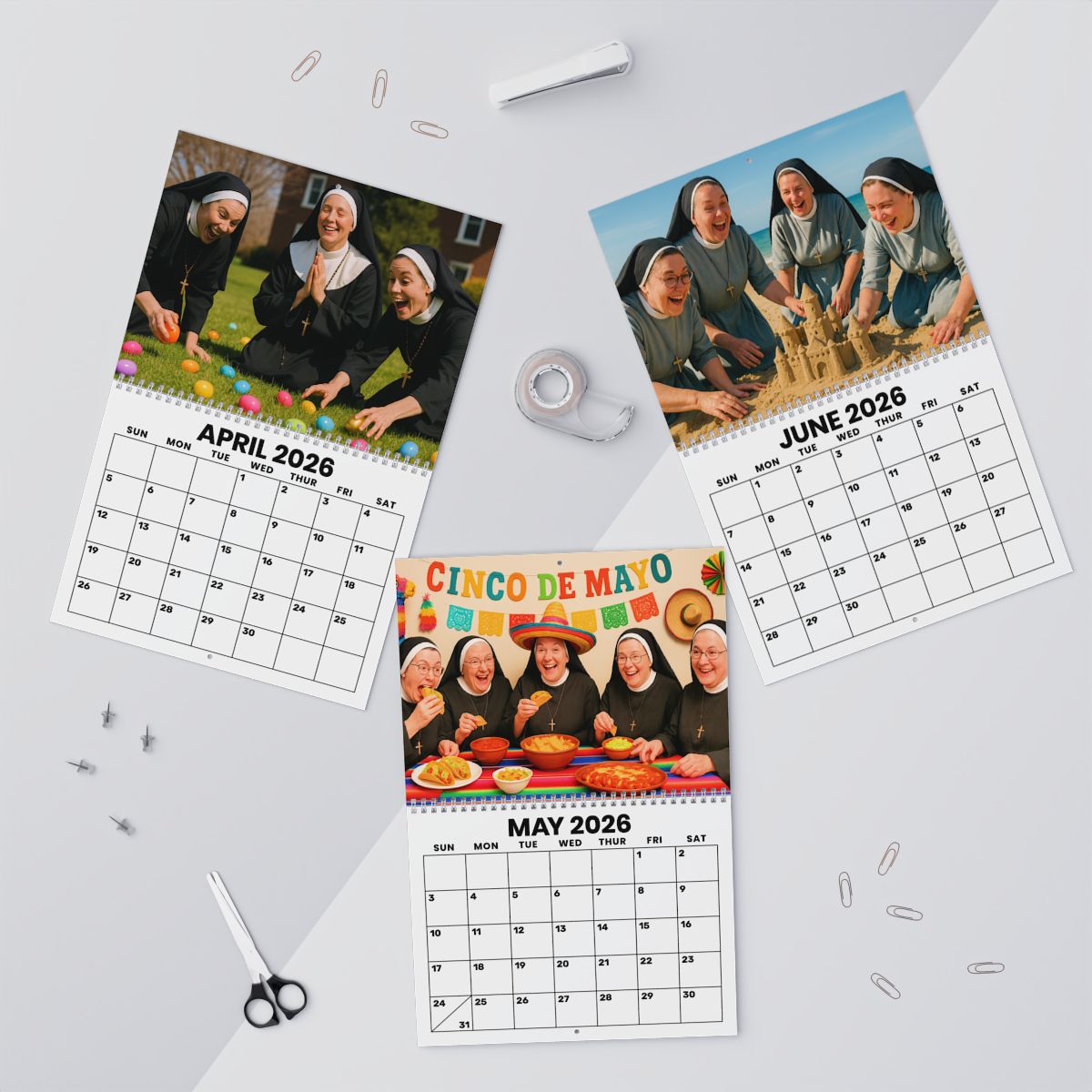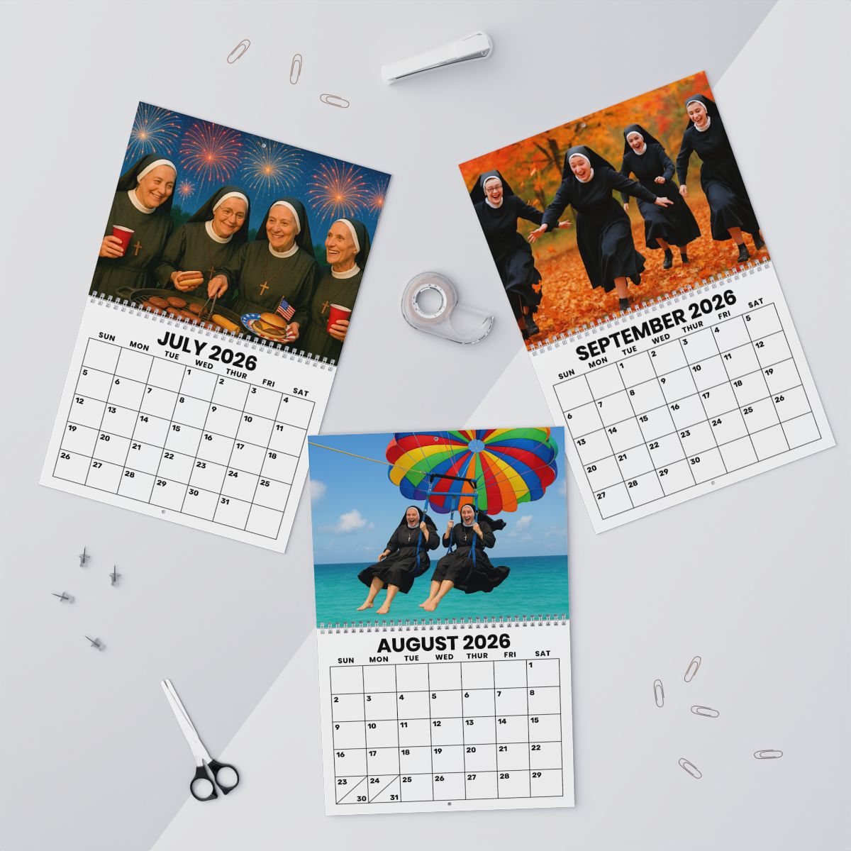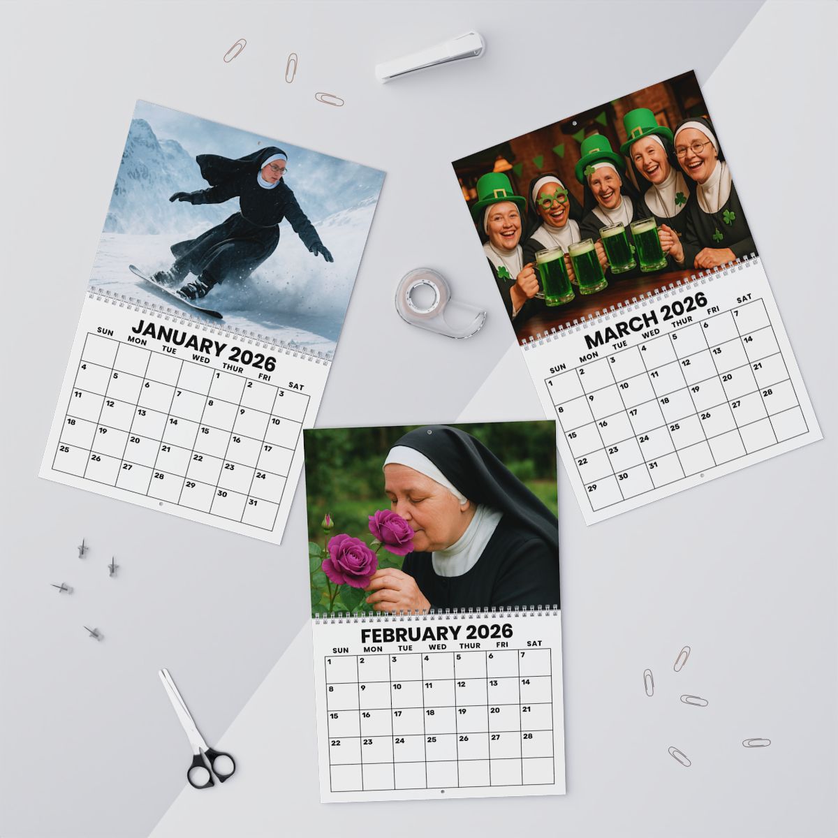 Fun Nuns Calendar 2026 Featuring 12 Different Images, Funny Gift for White Elephant, Humorous Catholic Present, Spiral Wall Calendar
