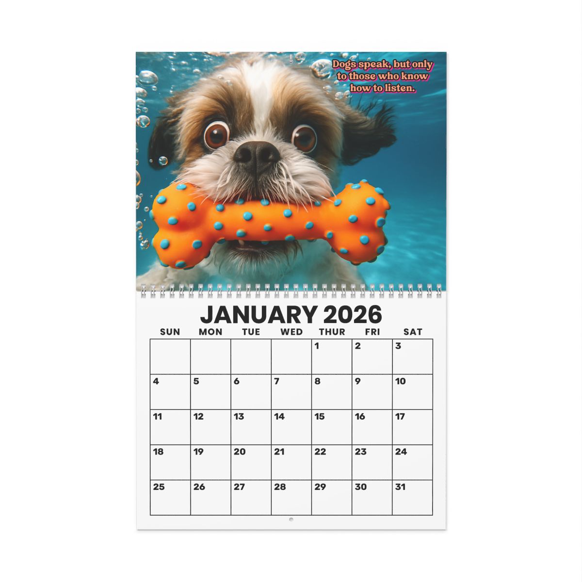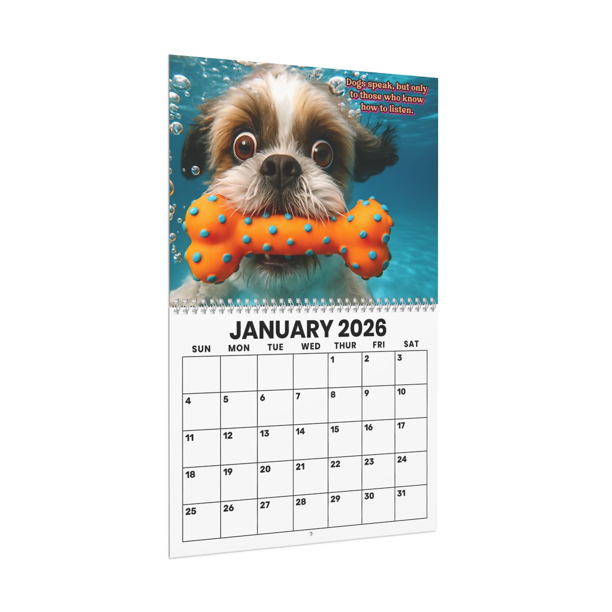 Underwater Dogs Calendar 2026 Featuring 12 Different Dog Breeds, Funny Gift for Dog Owner, New Dog Mom, Spiral Wall Calendar, Dog Lover